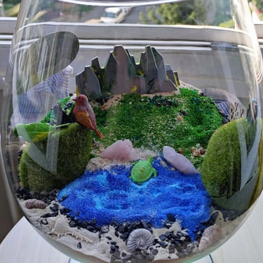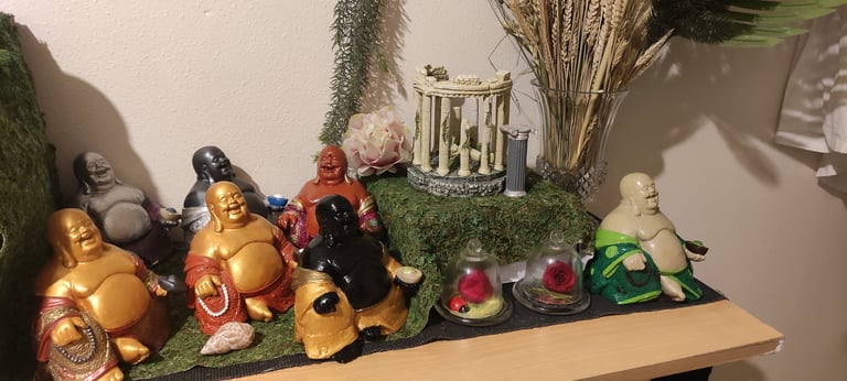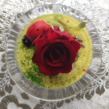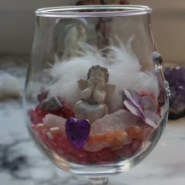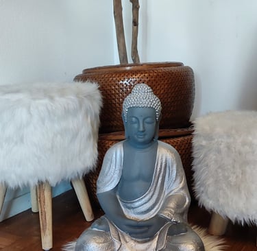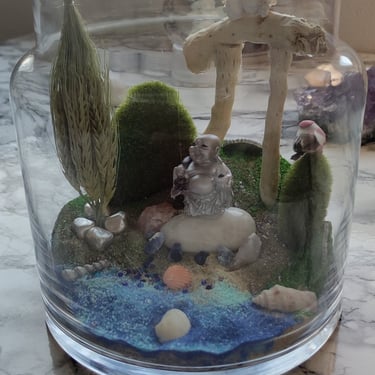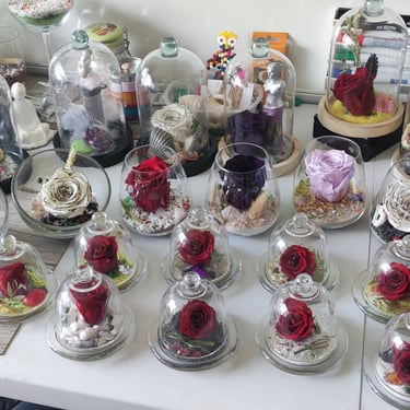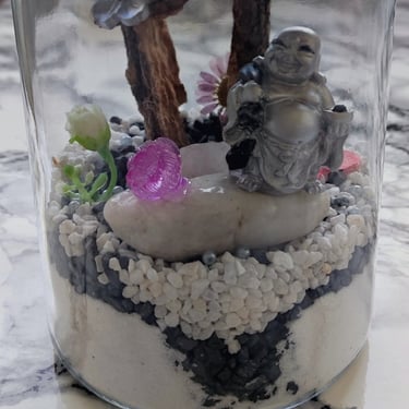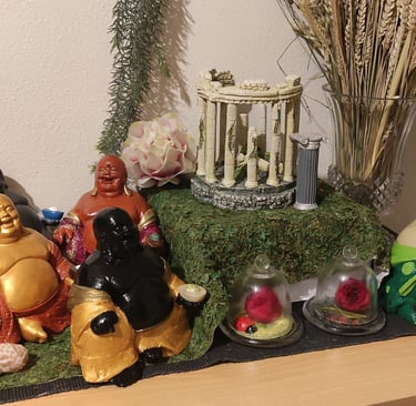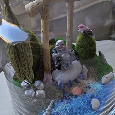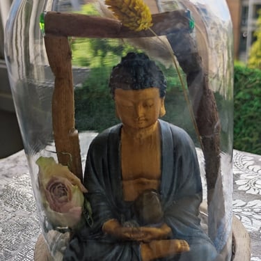 Dans un premier temps je me suis lancée dans la création d’objets décoratifs, des bulles d'énergies positives, en confectionnant des bouddhas, des roses éternelles et des décorations sous verre, en utilisant des matériaux naturels, tels que le bois, le plâtre, les pierres semi-précieuses (passionnée en lithothérapie) et du sable provenant de tous continents (symbolique forte et renfort énergétique).